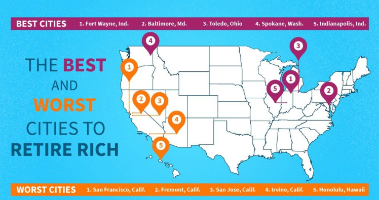 The number one spot was occupied by Fort Wayne which was then followed by Spokane, Wash, Baltimore, Ohio, and Toledo. The survey wasn't proved good to California as it labels the state worst option to visit in retiring days.